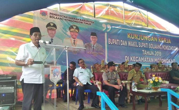 Boltim,WB—Bupati Kabupaten Boltim Sehan Landjar di dampingi ketua Tim Penggerak PKK Ny Nursiwin Landjar Dunggio bersama sejumlah asisten, pimpinan SKPD kembali melakukan kunjungan kerja (kunker) ke Enam di Kecamatan Motongkad tepatnya di Lapangan Bukit Hijau Desa Molobog, Rabu (20/2/2019).