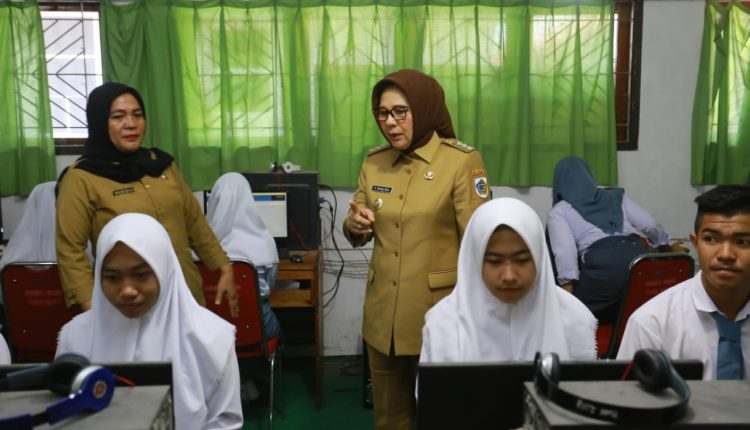 Kotamobagu,WB—Walikota Kotamobagu, Ir Hj Tatong Bara, Senin (25/3) pagi tadi, memantau proses pelaksanaan Ujian Nasional Berbasis Kompetensi (UNBK) tingkat SMA/SMK/Ma se- Kotamobagu.