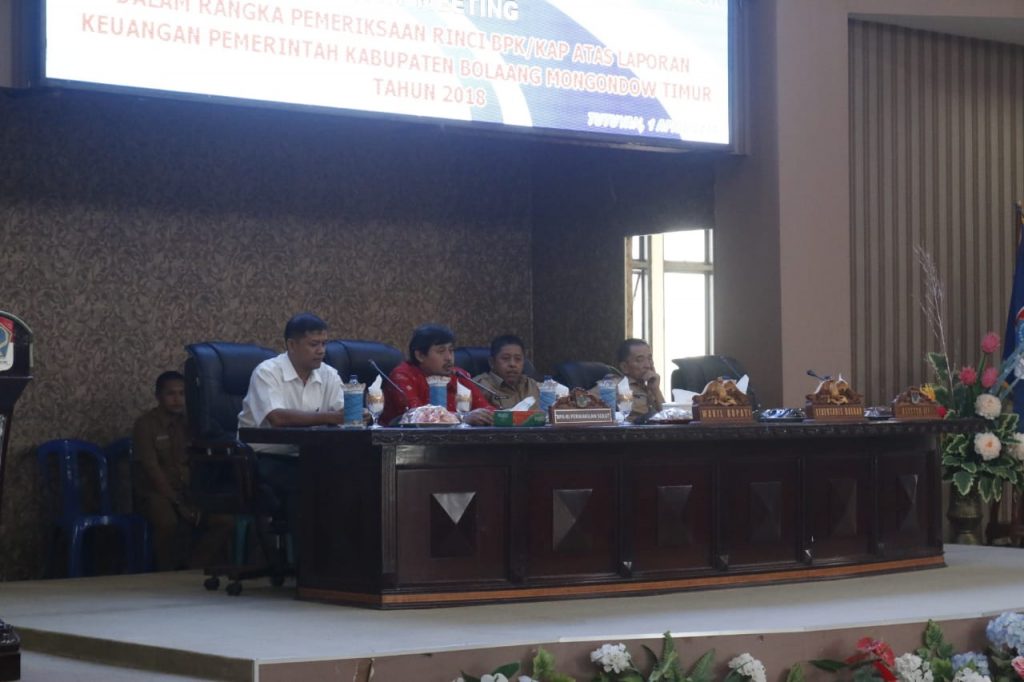 Boltim,WB—Sebagai tindak lanjut Laporan Keuangan, Pemerintah Kabupaten (Pemkab) Bolaang Mongondow Timur (Boltim), bersama Badan Pemeriksa Keuangan (BPK) perwakilan Provinsi Sulawesi Utara (Sulut), kembali mengutus tim untuk melakukan pemeriksaan rinci atas pengelolaan keuangan daerah di Boltim.