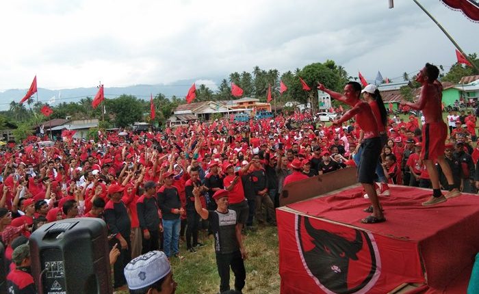 Bolmong,WB—Ribuan simpatisan dari Partai Demokrasi Indonesia Perjuangan (PDI-P) se-Kecamatan Lolayan, Sabtu (13/4) siang tadi, memadati Lapangan Gumempang Desa Mopait, Kecamatan Lolayan, Kabupaten Bolaang Mongondow (Bolmong).