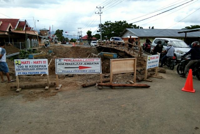 Jembatan lama pun sudah dibongkar oleh pelaksana proyek. Untuk kelancaran arus lalu lintas, kendaraan berukuran besar dengan beban 3,5 ton ke atas dialihkan. Sedangkan kendaraan dengan beban di bawah itu, bisa melintasi jembatan darurat yang dibangun.