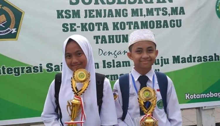 Dua siswa yang dimaksud yakni Salwa Nurunnadia Laoh dan Syahrun Rahman Mokoginta. Dimana, pada KSM tingkat MTs se-Kotamobagu sebelumnya, Salwa berhasil meraih juara I (Satu) bidang study Matematika terintegrasi. Sedangkan Rahman meraih juara 2 (Dua) dibidang yang sama.