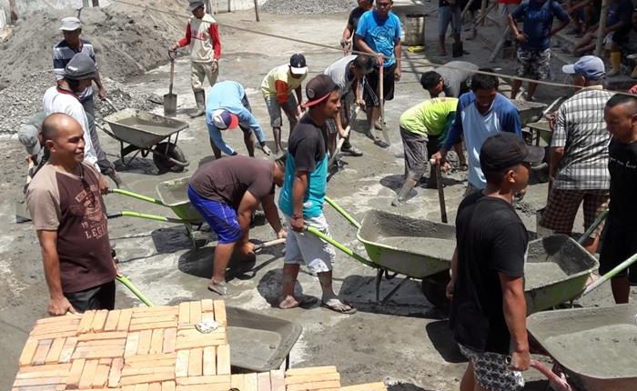 Kerja bakti yang dipusatkan di Masjid Al-Ikhlas Desa Bungko itu, dalam rangka untuk melakukan proses pengecoran lantai Masjid.