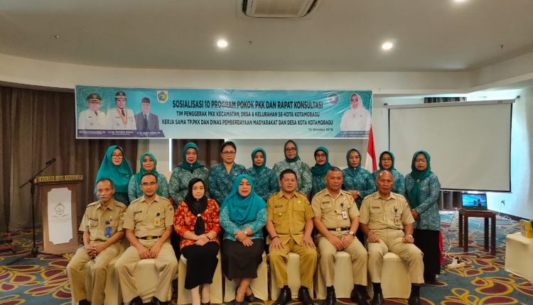 Kotamobagu,WB—Tim Pengerak PKK Kecamatan, Desa dan Kelurahan se Kotamobagu, bekerjasama TP PKK, Dinas Pemberdayaan Masyarakat dan Desa (PMD) Kotamobagu, menggelar Sosialisasi 10 Program Pokok PKK dan Rapat Konsultasi, di Hotel Sutanraja, Selasa (15/10/2019).