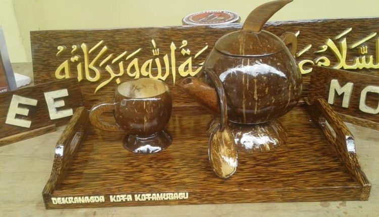 Kotamobagu,WB—Memanfaatkan limbah untuk dijadikan komoditas bukan lagi menjadi hal yang mustahil. Limbah yang menurut sebagian orang tak berharga, ternyata bisa menjadi produk yang laku dijual di pasaran. Misalnya, limbah batok kelapa atau tempurung, bisa dijadikan ragam aksesoris dan bahan rumah tangga seperti; mangkok, teko, kaligrafi, asbak dan aneka kerajinan lainnya.