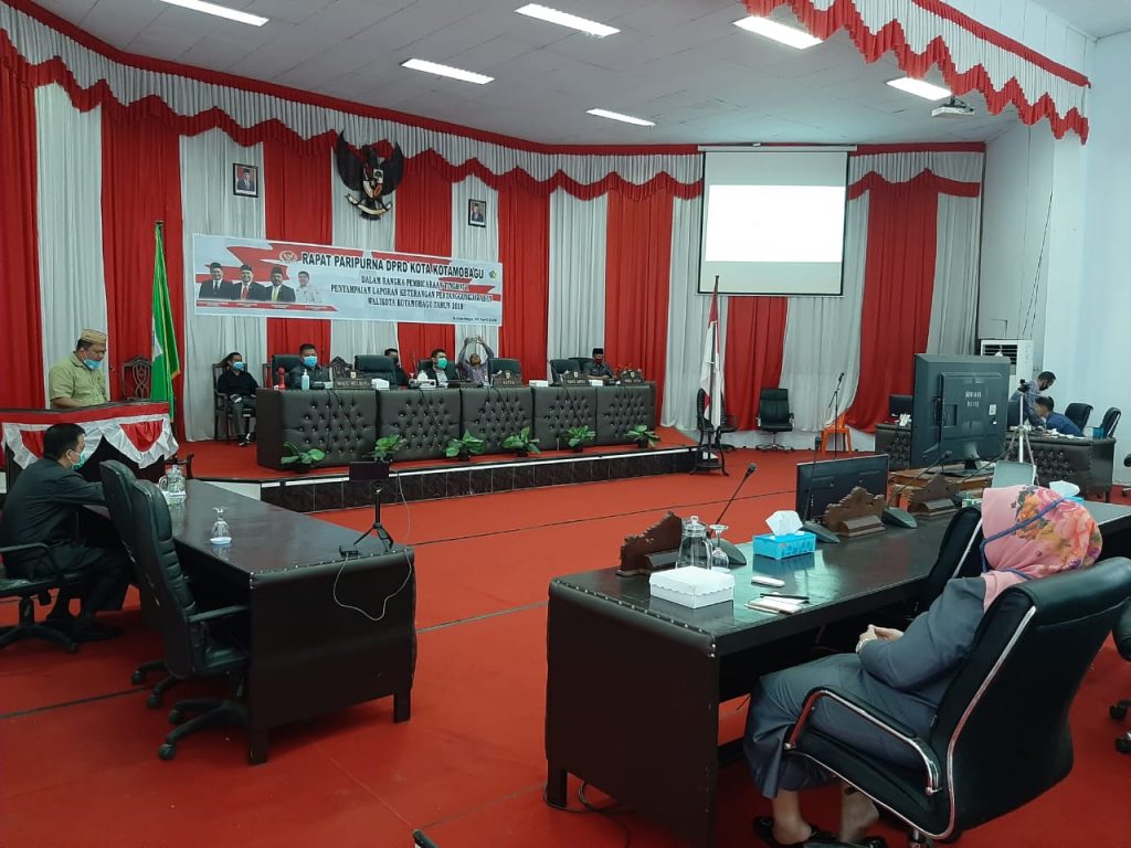 Kotamobagu,WB—Dewan Perwakilan Rakyat Daerah (DPRD) Kotamobagu, menggelar rapat paripurna, dalam rangka pembicaraan Tingkat I penyampaian Laporan Keterangan Pertanggung Jawaban (LKPJ) Walikota Kotamobagu Tahun 2019.