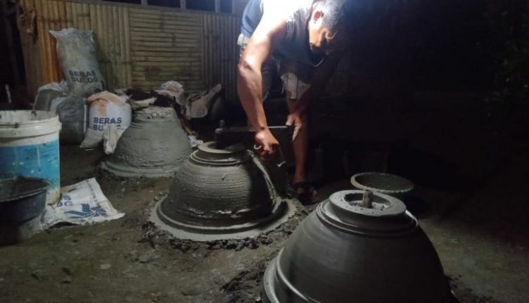 Kotamobagu,WB–Sebut saja Umarudin Lapadengan. Warga Desa Moyag, Kecamatan Kotamobagu Timur, membuat pot bunga beton sebagai potensi peluang usaha.