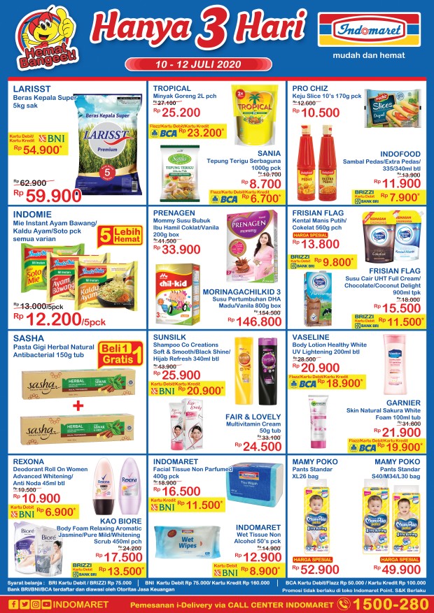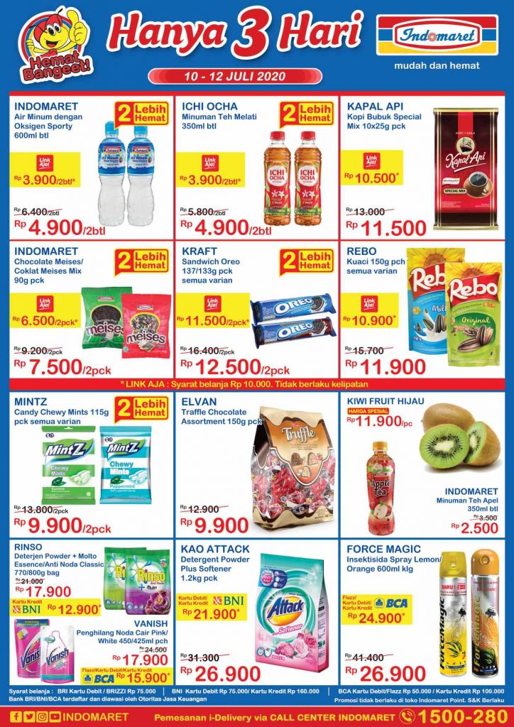 Sesuai sebutannya, promo JSM Indomaret berlaku Hanya 3 Hari, terhitung mulai tanggal 10, 11 dan 12 Juli 2020. Siapa tahu, barang-barang yang masuk program promo JSM Indomaret ini cocok bagi kebutuhan Anda.