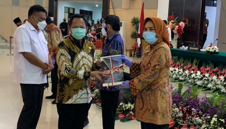 Dalam kesempatan ini juga diserahkan buku pedoman menghadapi covid 19 kepada seluruh kepala daerah, termasuk wali kota Kotamobagu.