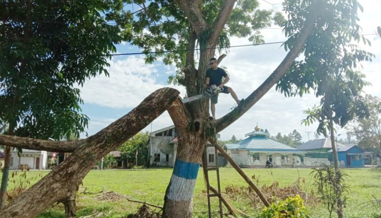 Kotamobagu,WB–Merespon permintaan masyarakat sekitar tentang kekhawatiran mereka akan pohon tumbang, Pemerintah Desa (Pemdes) Bungko Kecamatan Kotamobagu Selatan langsung melakukan pemangkasan dan penebangan pohon rindang di komplek lapangan sepakbola setempat, Jumat (14/8/2020).