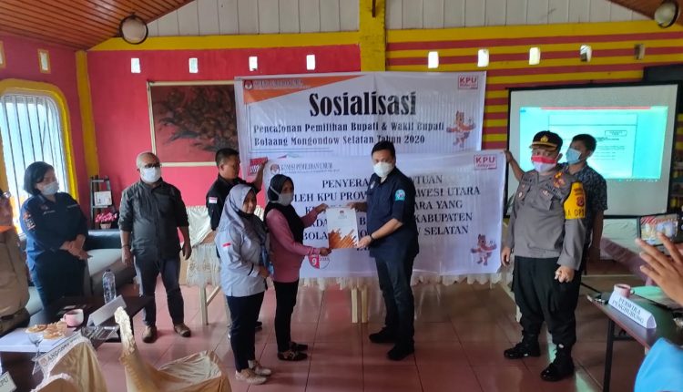 Bantuan ini diserahkan langsung oleh Ketua KPU Provinsi Sulut, Ardiles Mewoh, di sela-sela agenda sosialisasi KPU Bolsel tentang pencalonan Bupati dan Wakil Bupati Kabupaten Bolsel tahun 2020, bertempat di Queen Resto Sondana, Selasa (25/8/2020).