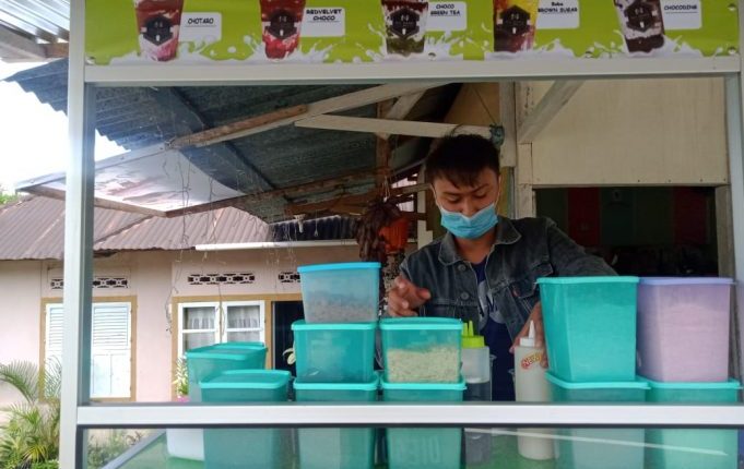 Kotamobagu,WB–Minuman Boba saat ini sudah sangat trending di Kota Kotamobagu. Sudah banyak yang menjalankan bisnis minuman kekinian ini. Salah satunya Minuman Boba ‘No Name’ milik Fauji Mamonto, warga Desa Moyag, Kecamatan Kotamobagu Timur.