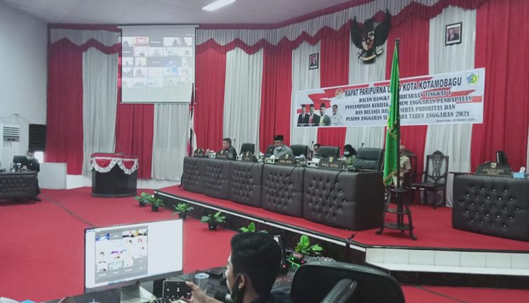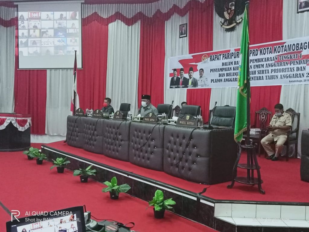 Sidang rapat paripurna ini dipimpin langsung ketua DPRD Meidy Makalalag, serta diikuti langsung Wali Kota Kotamobagu, Ir. Tatong Bara, rapat paripurna melalui Video Conference.