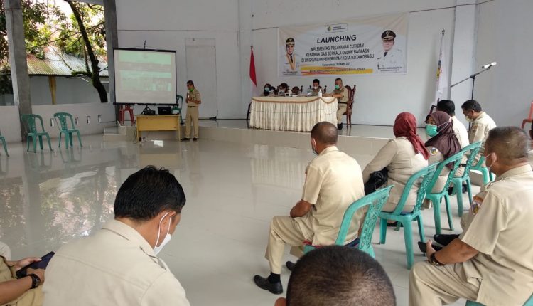 Kotamobagu,WB-Pemerintah Kotamobagu menggelar Launching Implementasi Layanan Cuti dan Kenaikan Gaji Berkala Online Bagi Aparatur Sipil Negara (ASN) di Aula Kantor Wali Kota, Selasa (30/3/2021).