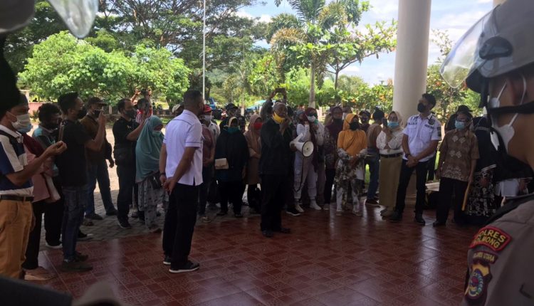 Aksi ratusan masyarakat didepan kantor DPRD Bolmong tersebut dikawal ketat aparat kepolisian Polres Bolmong.(Tim)