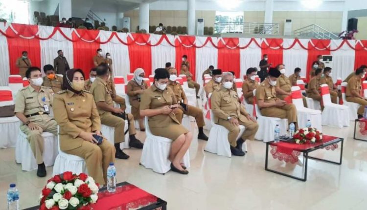 Kotamobagu,WB-Walikota Kotamobagu, Ir. Hj. Tatong Bara menghadiri sosialisasi penerapan manajemen kinerja, tata cara pengisian Jabatan Pimpinan Tinggi (JPT) dan disiplin kinerja PNS oleh Komisi Aparatur Sipil Negara (KASN), bertempat di ruang Serbaguna Kantor Gubernur Sulawesi Utara, Senin (19/4/2021).