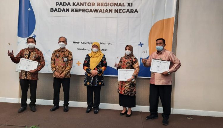 Penghargaan tersebut diterima langsung oleh Kepala Badan Kepegawaian Pendidikan dan Pelatihan (BKPP) Kotamobagu, Sarida Mokoginta SH, yang diserahkan oleh Sekretaris Utama BKN ibu Imas Sukmariah, saat mengikuti kegiatan Rapat Koordinasi Pelayanan Kepegawaian pada Kantor Revional XI BKN yang di laksanakan di Hotel Courtyard by Marriott Bandung, Kamis (10/06/2021).