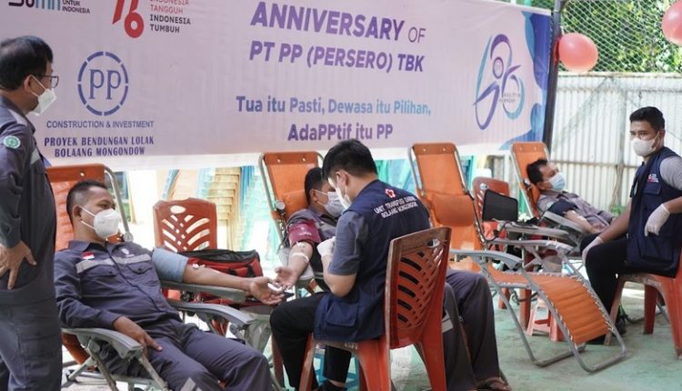 Bedanya, PT PP (Persero) Tbk, Proyek Bendungan Lolak merayakannya dengan menggelar aksi bakti sosial donor darah untuk kemanusiaan, Kamis (26/8/2021) kemarin.