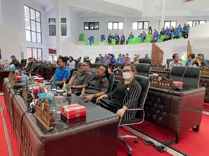 Kotamobagu,WB—Ketua Dewan Perwakilan Rakyat Daerah (DPRD) Kota Kotamobagu, Meiddy Makalalag ST, memimpin rapat Paripurna dalam rangka pembicaraan tingkat I penyampaian Ranperda tentang penyelengaraan adat, badan usaha milik daerah, dana abadi Mesantren dan Madrasah, perubahan atas Perda nomor 6 tahun 2014 tentang penyertaan modal, Kamis 24 Maret 2022.