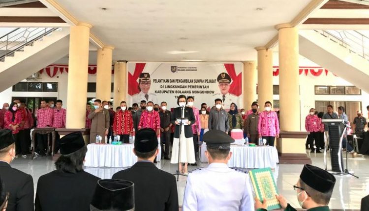 Bolmong,WB-Bupati Kabupaten Bolaang Mongondow (Bolmong), Yasti Soepredjo Mokoagow melantik dan mengambil sumpah terhadap 42 pejabat di lingkup Pemerintah Kabupaten (Pemkab) Bolmong, Kamis 12 Mei 2022.