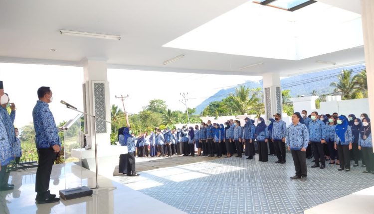 BOLTIM,WB-Bupati Kabupaten Bolaang Mongondow Timur, Sam Sachrul Mamonto, memimpin apel Korpri di halaman Rumah Sakit Daerah (RSD) Ambang Pratama, Selasa 17 Mei 2022.