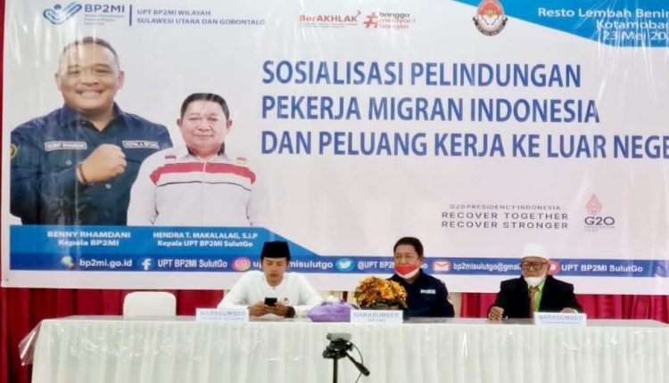“Kesempatan sosialisasi ini merupakan kesempatan yang sangat baik bagi pemerintah untuk menginformasikan peluang kerja ke luar negeri secara prosedural, agar masyarakat tidak tergiur bujuk rayu para oknum yang sering menjerumuskan para pekerja migran kita untuk ikut pada jalur yang salah. Untuk itu, dalam sosialisasi ini kami akan menjabarkan secara jelas mengenai cara yang benar untuk bekerja di luar negeri agar masyarakat Sulawesi Utara khususnya Bolaang Mongondow Raya bisa paham serta tertarik dan berminat untuk bekerja kesana,” ungkap Benny.
