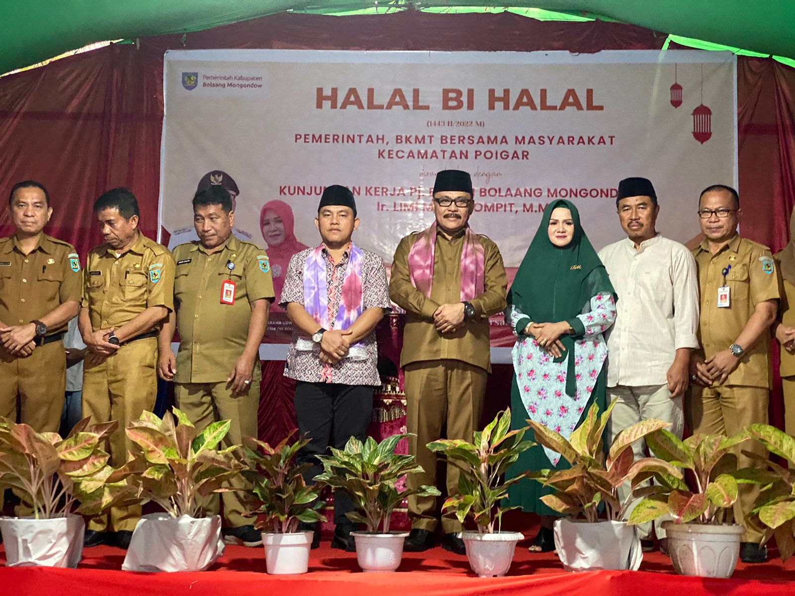 BOLMONG,WB—Penjabat (Pj) Bupati Kabupaten Bolaang Mongondow (Bolmong), Ir Limi Mokodompit MM menghadiri kegiatan Halal Bi Halal di Kecamatan Poigar, Selasa 31 Mei 2022.