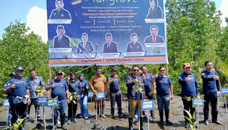 BOLTIM,WB-Bupati Sam Sachrul Mamonto.S.Sos.M.Si menghadiri kegiatan Garda Pemuda Nasdem (GPND) Peduli Mangrove, yang berlokasi di Pantai Paret Timur, Kabupaten Bolaang Mongondow Timur (Boltim), Senin 13 Juni 2022.