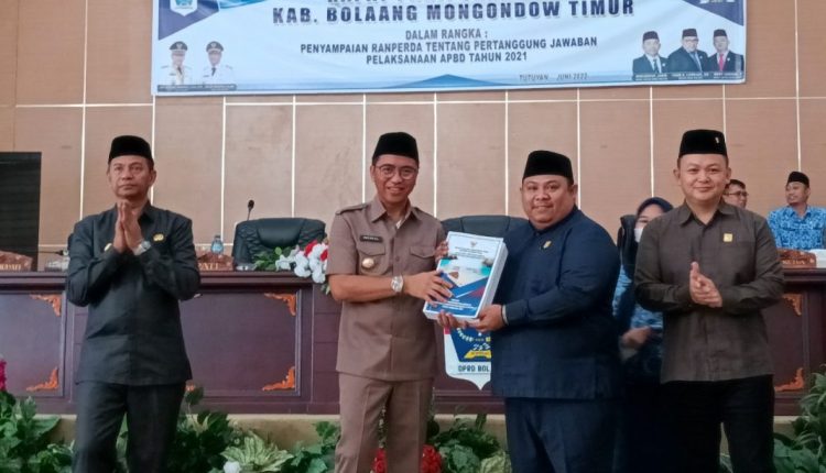Agenda kali ini dalam rangka memberikan penyampaian Rancangan Peraturan Daerah (Ranperda) tentang pertanggung jawaban pelaksanaan Anggaran Pendapatan Belanja Daerah (APBD) Tahun 2021, yang berlangsung di Gedung Paripurna DPRD Boltim.