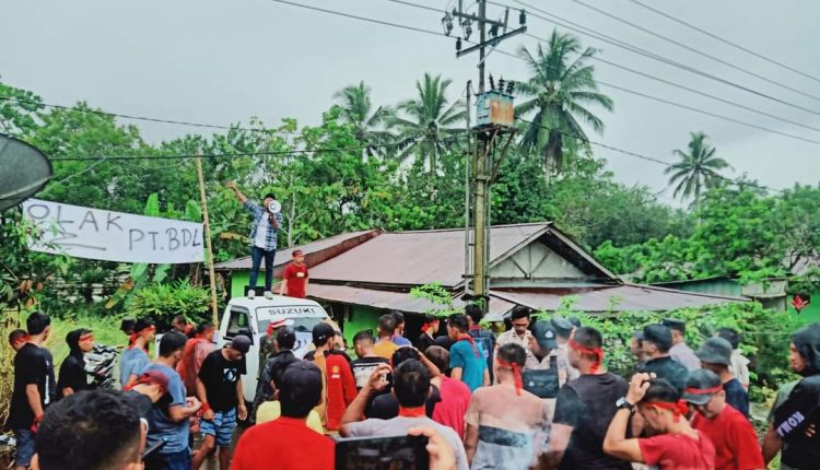 Adapun demo penolakan dari aliansi masyarakat lingkar tambang PT BDL tersebut dilakukan tepat di depan jalan pintu masuk perkebunan Nambu Mopait.
