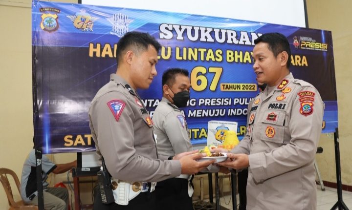 “Selamat hari lalu lintas Bhayangkara ke-67, semoga Polantas semakin Presisi, pulih dan bangkit bersama menuju Indonesia maju, ” ucap Kapolres ketika menyerahkan potongan Tumpeng kepada personil Satuan Lalu Lintas yang tertua dan termuda. ***