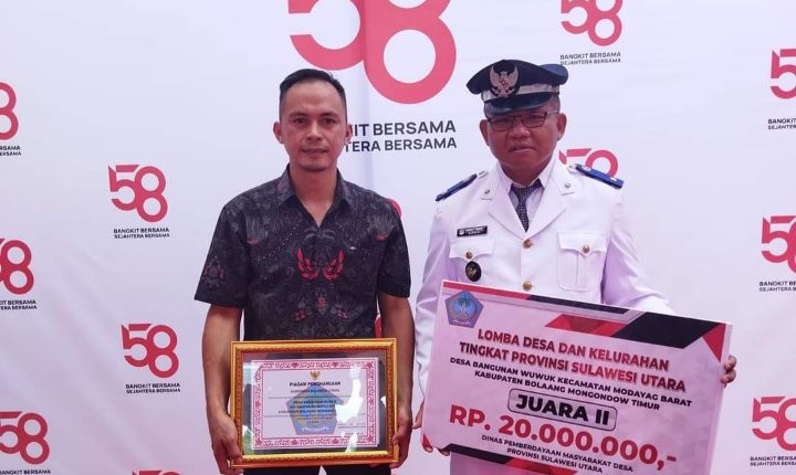 BOLTIM,WB – Desa Bangunan Wuwuk Kecamatan Modayag Barat, Kabupaten Bolaang Mongondow Timur (Boltim) meraih juara II dalam lomba Desa dan Kelurahan tingkat Provinsi Sulawesi Utara (Sulut) yang digelar oleh Dinas Pemberdayaan Masyarakat dan Desa (DPMD) Provinsi.