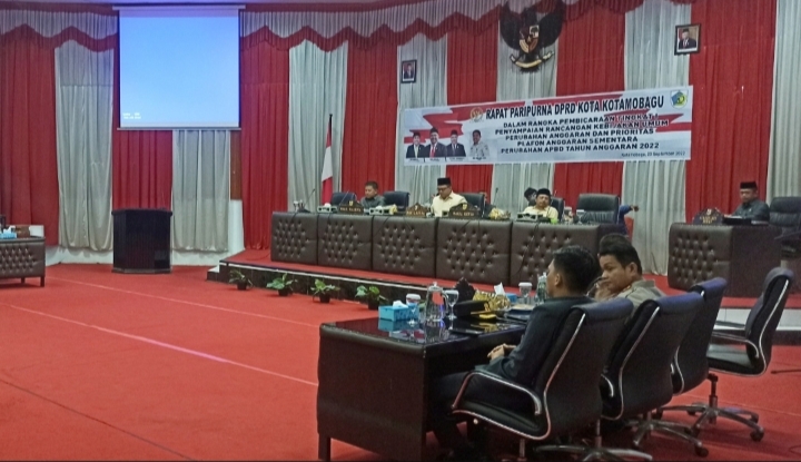 Hal ini, disampaikan langsung oleh wakil ketua DPRD Kotamobagu, Syarifudin Mokodongan ketika memimpin rapat paripurna dengan agenda pembicaraan tingkat I penyampaian Rancangan Kebijakan Umum Anggaran dan Prioritas Plafon Anggaran Sementara (KUA-PPAS) Perubahan APBD Kotamobagu tahun 2022.