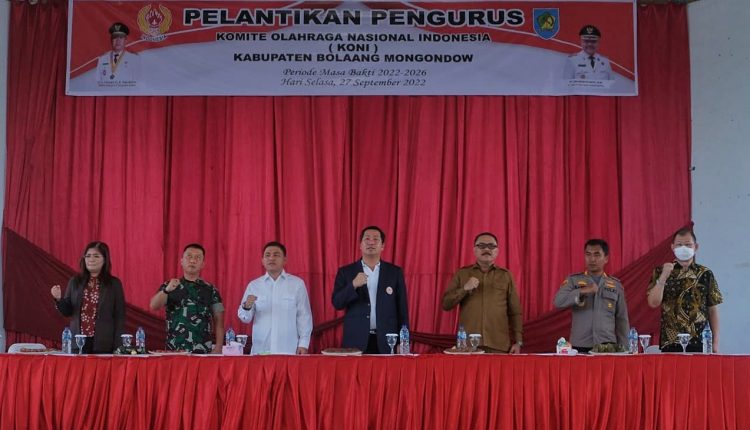 BOLMONG,WB—Pengurus Komite Olahraga Nasional Indonesia (KONI) Kabupaten Bolaang Mongondow (Bolmong) Resmi dilantik, di Gedung Yadika, Desa Kopandakan II, Kecamatan Lolayan, Selasa (27/9/2022).