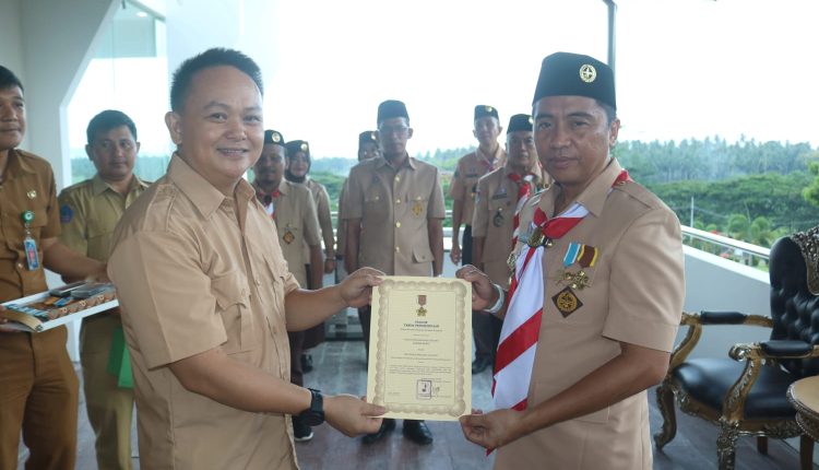 Tanda penghargaan tersebut diserahkan langsung oleh Ketua Kwartir Cabang (Kwarcab) gerakan pramuka Boltim, Medy Lensun, bertempat di Ruang Kantor Bupati Boltim.