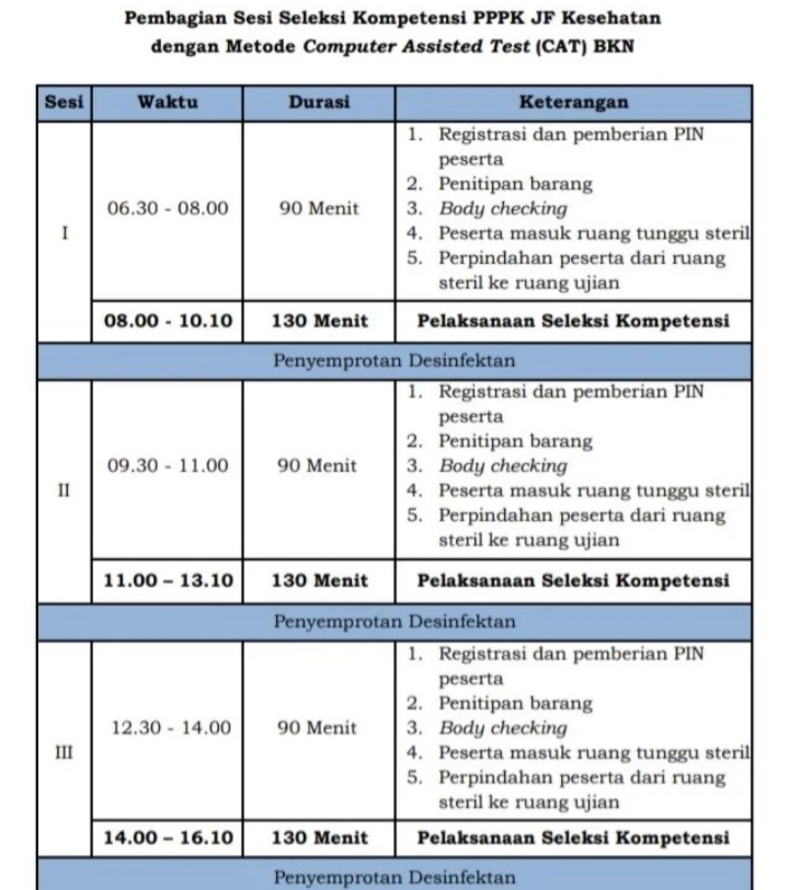 Berikut pembagian sesi seleksi kompetensi PPPK JF Nakes dengan motode CAT BKN: