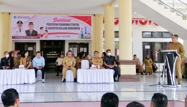 BOLMONG,WB-Pemerintah Kabupaten (Pemkab) Bolaang Mongondow (Bolmong), menggelar sosialisasi percepatan penurunan angka stunting secara terpadu.