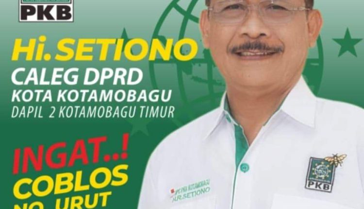 Setiono masuk dalam daftar calon sementara bakal calon legislatif Partai Kebangkitan Bangsa (PKB), sebagai bakal calon legislatif Daerah Pemilihan (Dapil) 2 Kotamobagu, nomor urut 2.