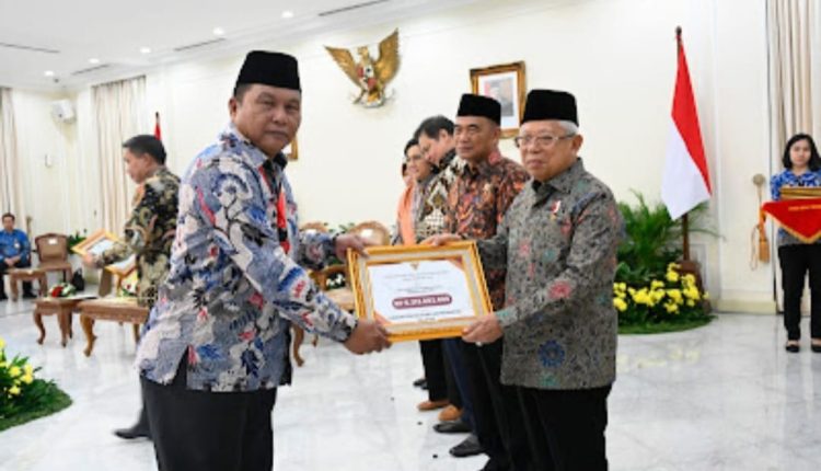 Bolsel,WB—Pemerintah Daerah (Pemda) Bolaang Mongondow Selatan (Bolsel), mendapatkan penghargaan dana Insentif Fiskal Ketegori Kinefha Penghapusan Kemiskinan Ektrem Tahun 2023, dari Pemerintah Pusat yang diberikan langsung oleh Wakil Presiden Ma’ruf Amin kepada Wakil Bupati Bolsel Deddy Abdul Hamid, di Istana Wakil Presiden, Kamis 09 November 2023.