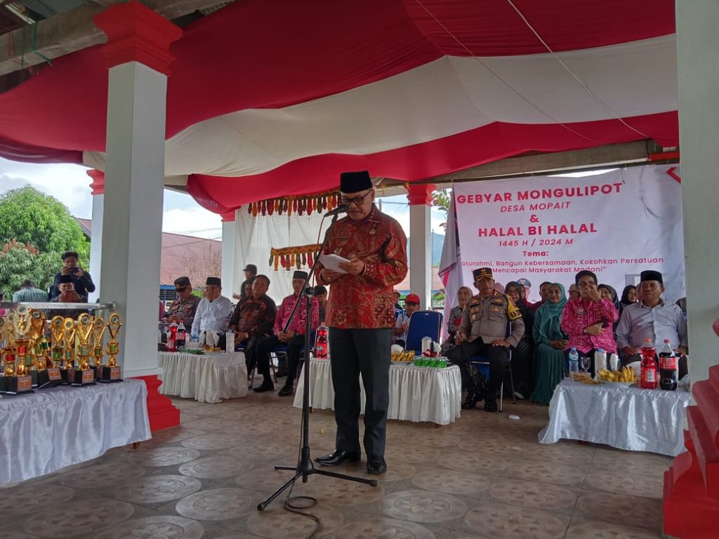 Bupati dalam sambutanya menyampaikan selamat hari raya idul fitri 1 Syawal 1445 Hijriah, minal aidin wal faidzin, mohon maaf lahir dan bathin, kepada seluruh masyarakat di wilayah kecamatan lolayan, khususnya masyarakat desa Mopait.