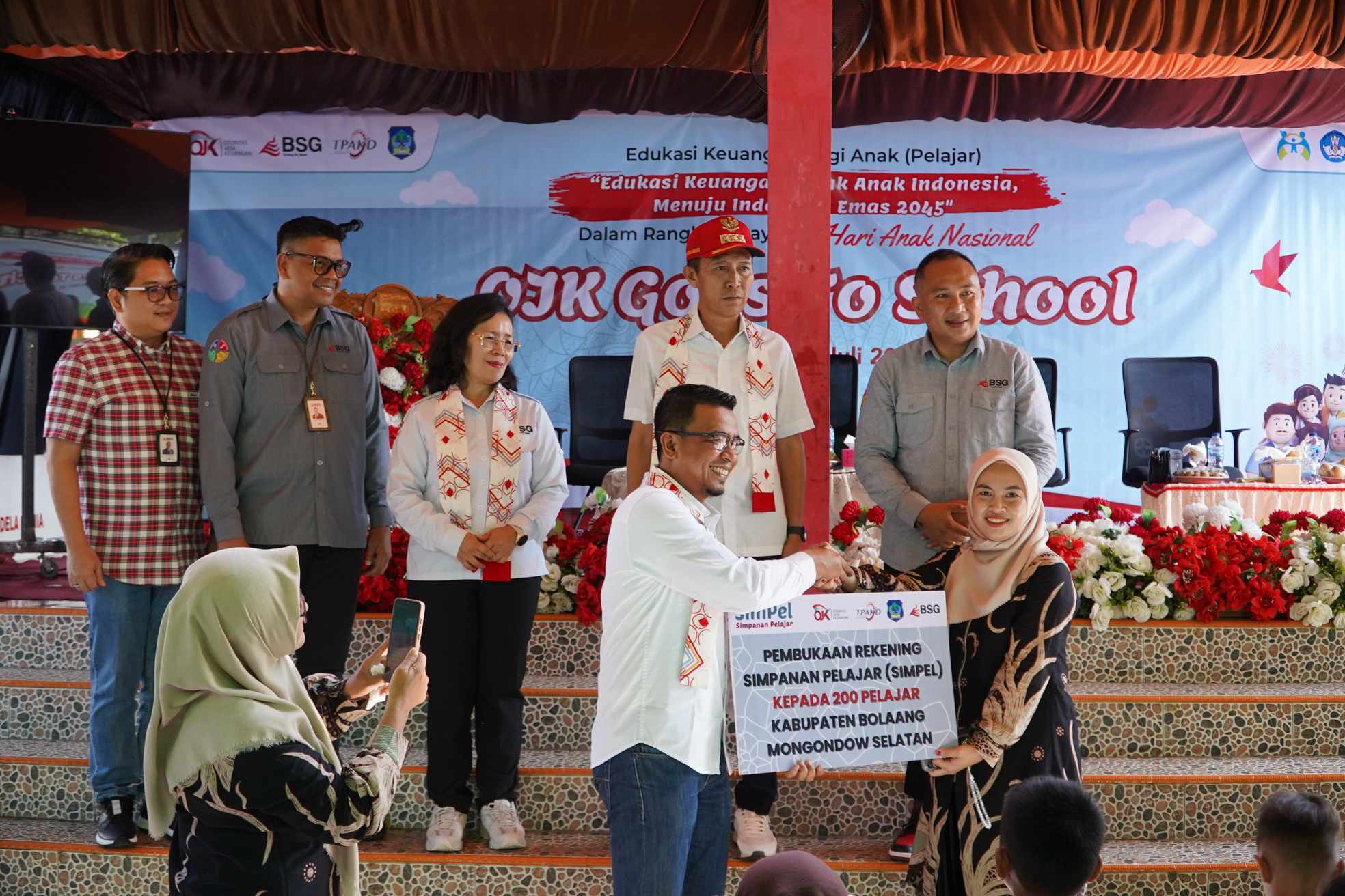Di akhir acara, orang nomor satu Bolsel ini bersama pimpinan OJK dan BSG menyerahkan secara simbolis Buku Tabungan kepada para siswa.