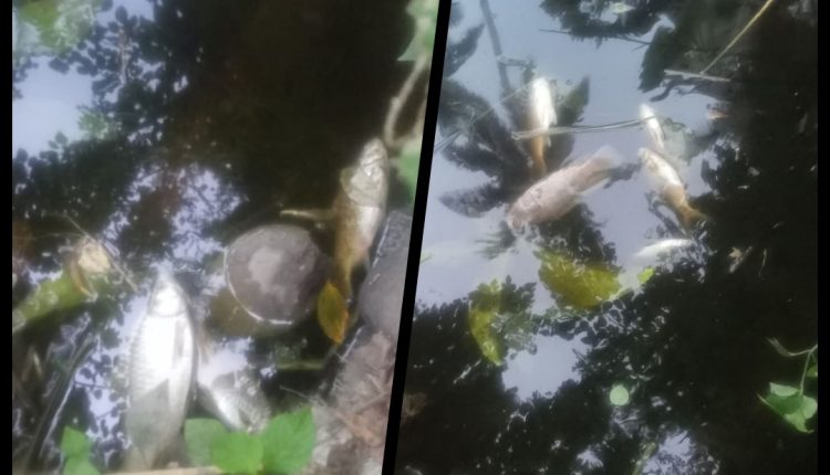 Dalam unggahan foto dan video terlihat banyak ikan yang terapung mati didalam kolam.