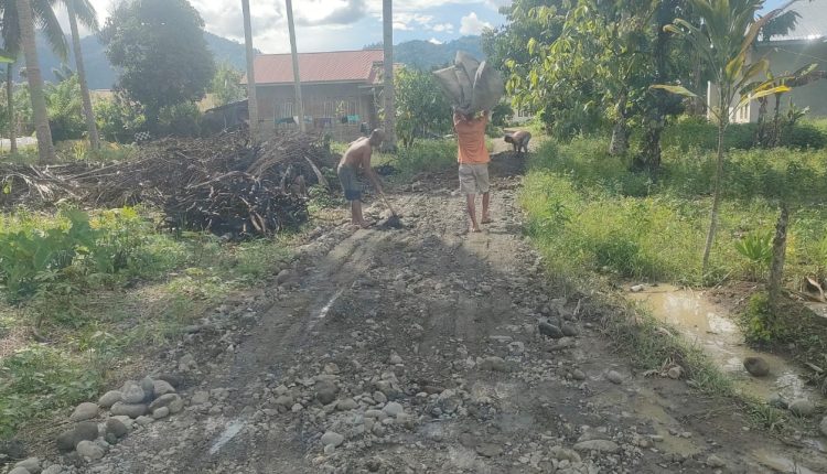 Inisiatif Sendiri, Sejumlah Warga Desa Mopait Patungan Perbaiki Jalan