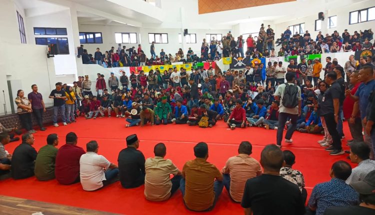 KOTAMOBAGU,WB-Ratusan mahasiswa yang tergabung bersama elemen masyarakat menggelar aksi unjuk rasa di gedung kantor DPRD Kotamobagu, Senin 1 September 2025.